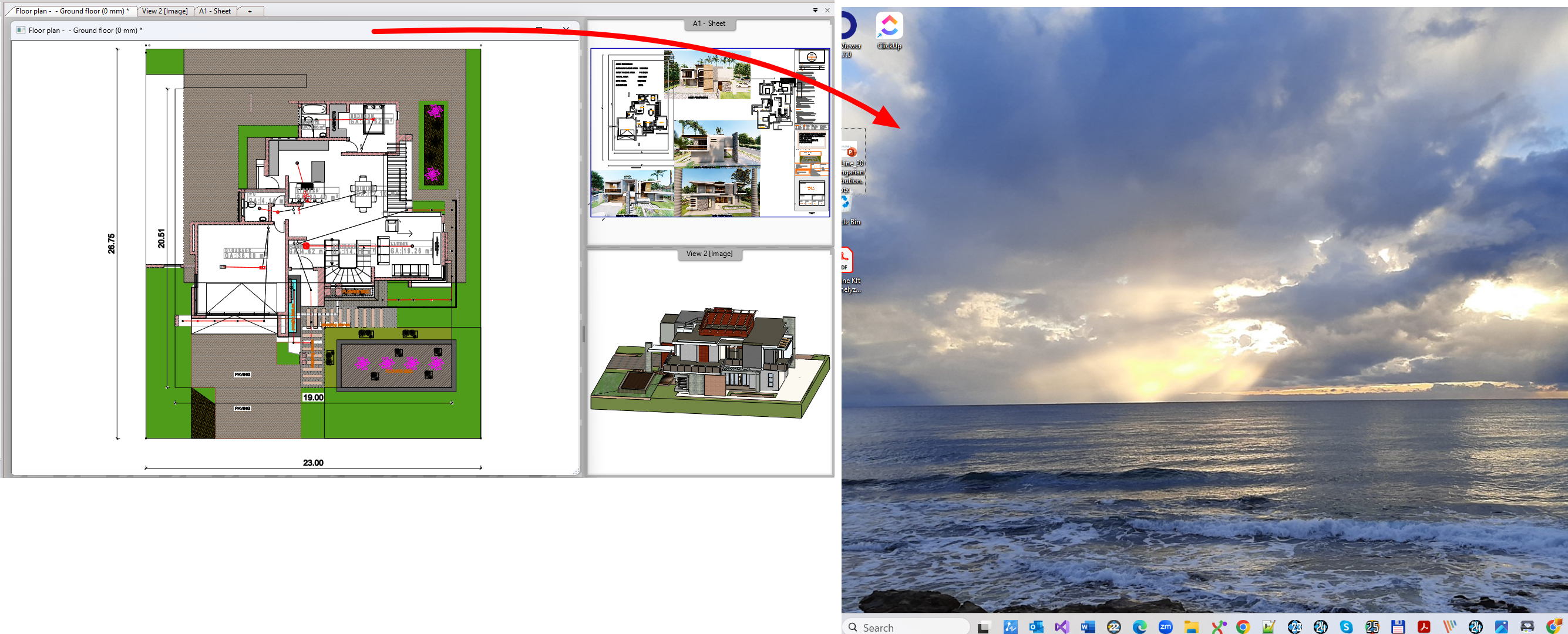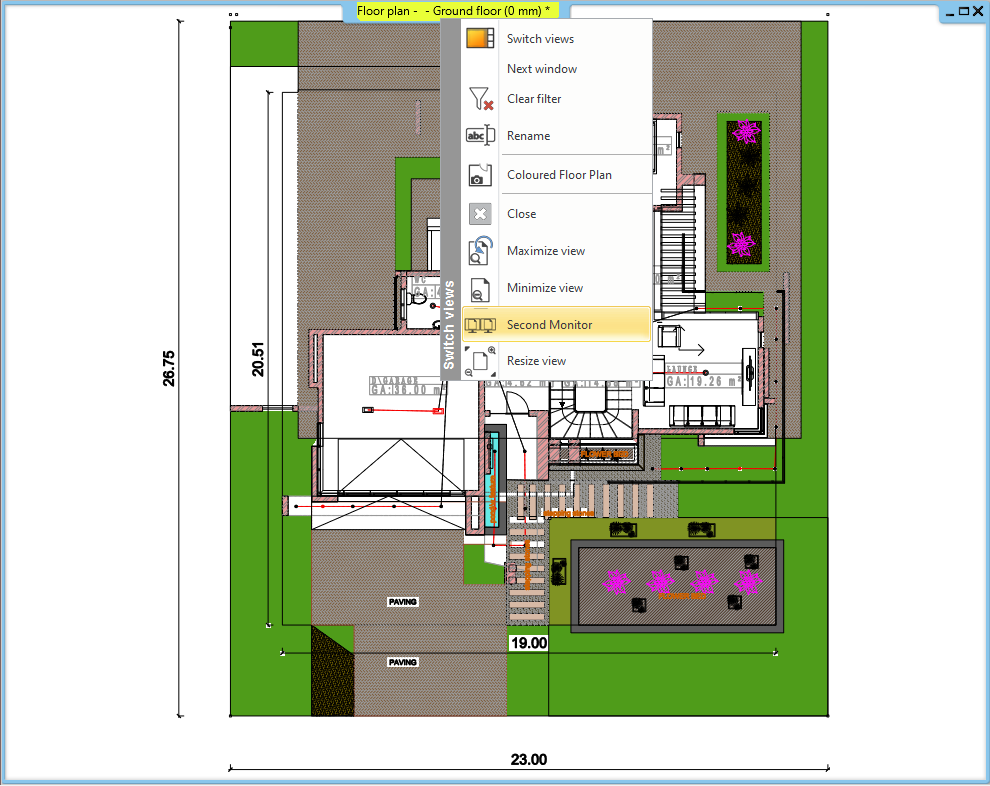In the ARCHLine.XP it is easy to configure the display layout using the second monitor placing there one or more 2D or 3D views.
