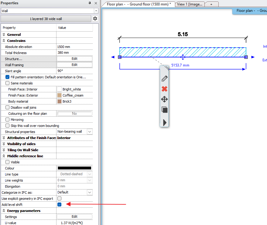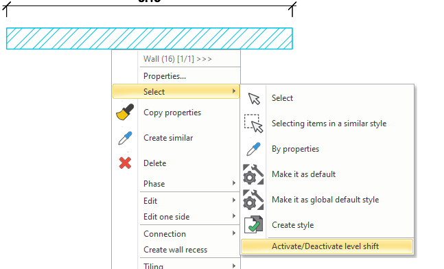 Sometimes, due to the topography or other reasons, the building should be designed with a mezzanine floor. A mezzanine floor shift can be set within the level and this height can be referred to later.