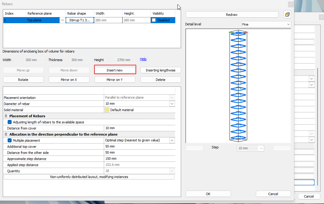 The Rebar tool allows you to place predefined rebar shapes or custom rebar to reinforce concrete modeling elements such as columns and beams.
