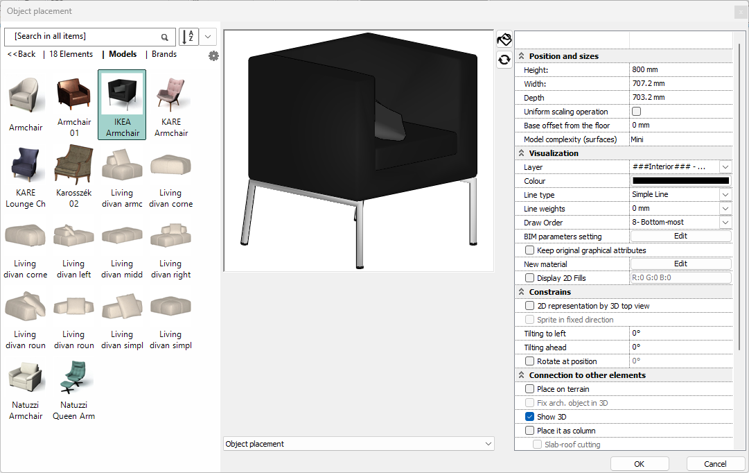 If you have modelled an object and want to save it to the library, you can easily create an object from the selected models using the Create new object function.