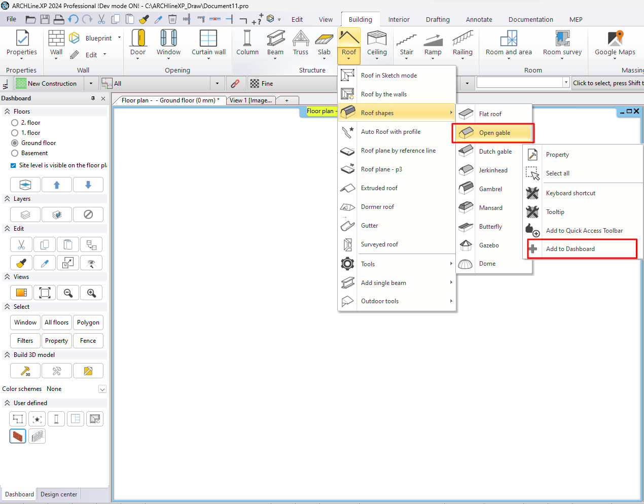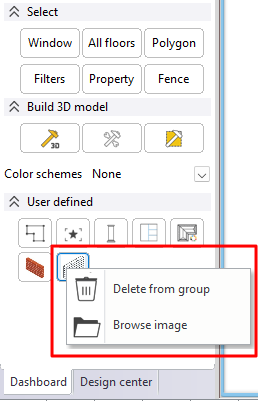 The advantage is that any command placed on the dashboard that can be found in the ribbon menu is available here with one click. In addition, frequently used styles can also be selected and a unique icon can be assigned, thus facilitating quick recognition.