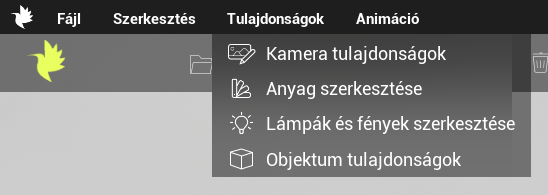 - Anyagok szerkesztése: a projektben kijelölt anyag tulajdonságait lehet vele módosítani.