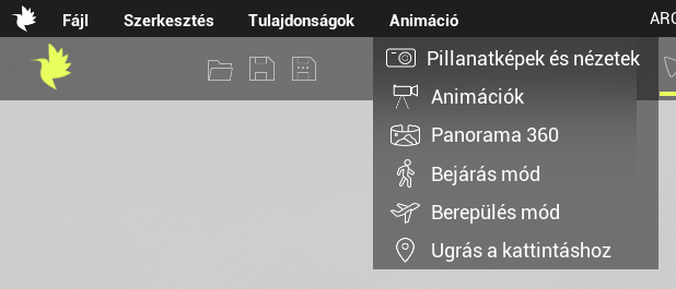 - Ugrás a kattintáshoz: a projekten belül a kattintás helyére navigál a kamera automatikusan az adott kameraállással.