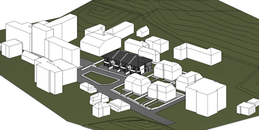 Helyszín: Épület > Helyszín és Tömegvázlat > Tömegmodell