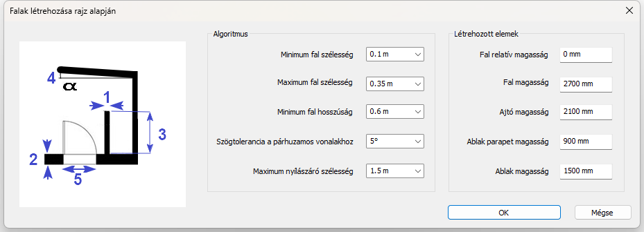 Válassza a Generált alaprajz parancsot. Adja meg a megjelenő dialógban a kivánt határértékeket.