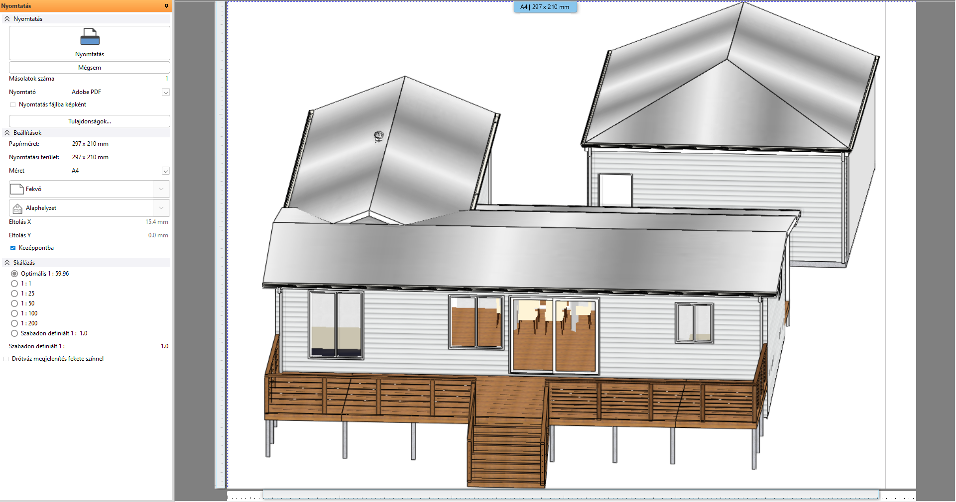 Az aktuális 3D nézetet közvetlenül kinyomtathatja PDF-fájlba vagy nyomtatóval/plotterrel. Így könnyedén megoszthatja másokkal a projekt 3D modell nézeteit.