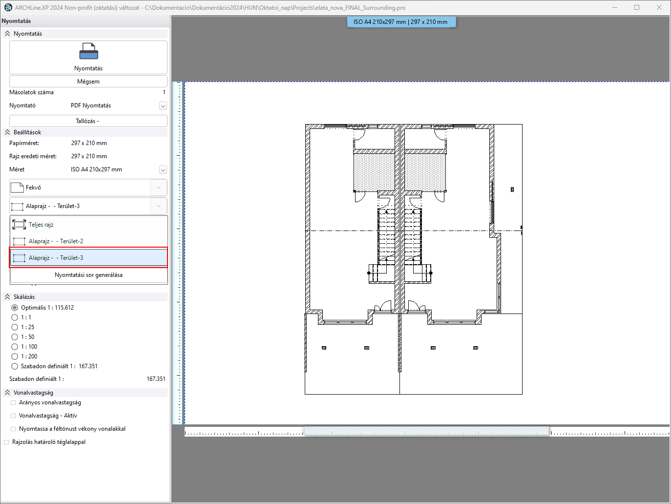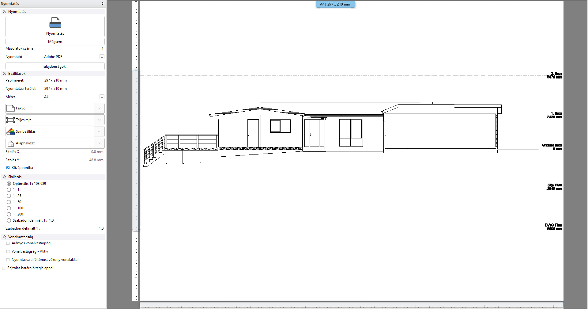 Kiválaszthatja a rajz optimális befoglaló ablakát vagy a terven elhelyezett nyomtatási területek egyikét.