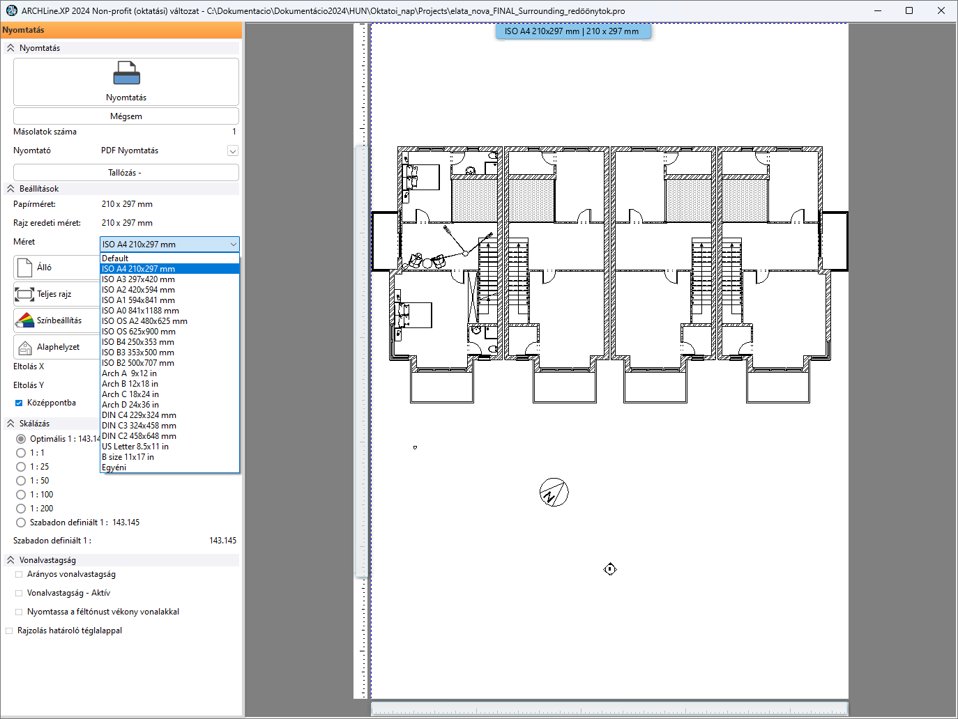 1:1 méretarányt kell beállítania a nyomtatási tervlapról történő nyomtatás esetén, mert az elrendezés valós méretű virtuális papír, és nem szükséges tovább méretezni.