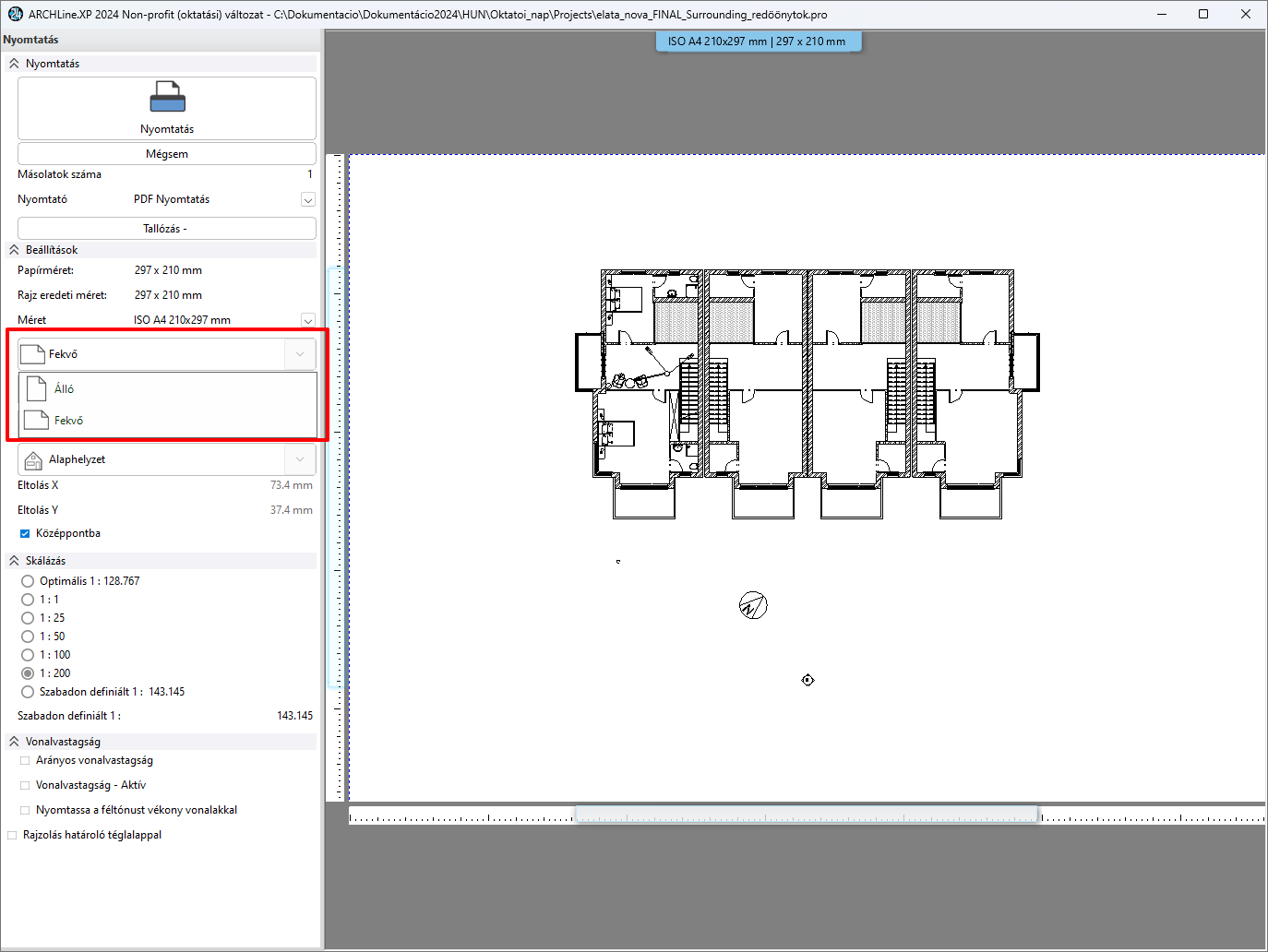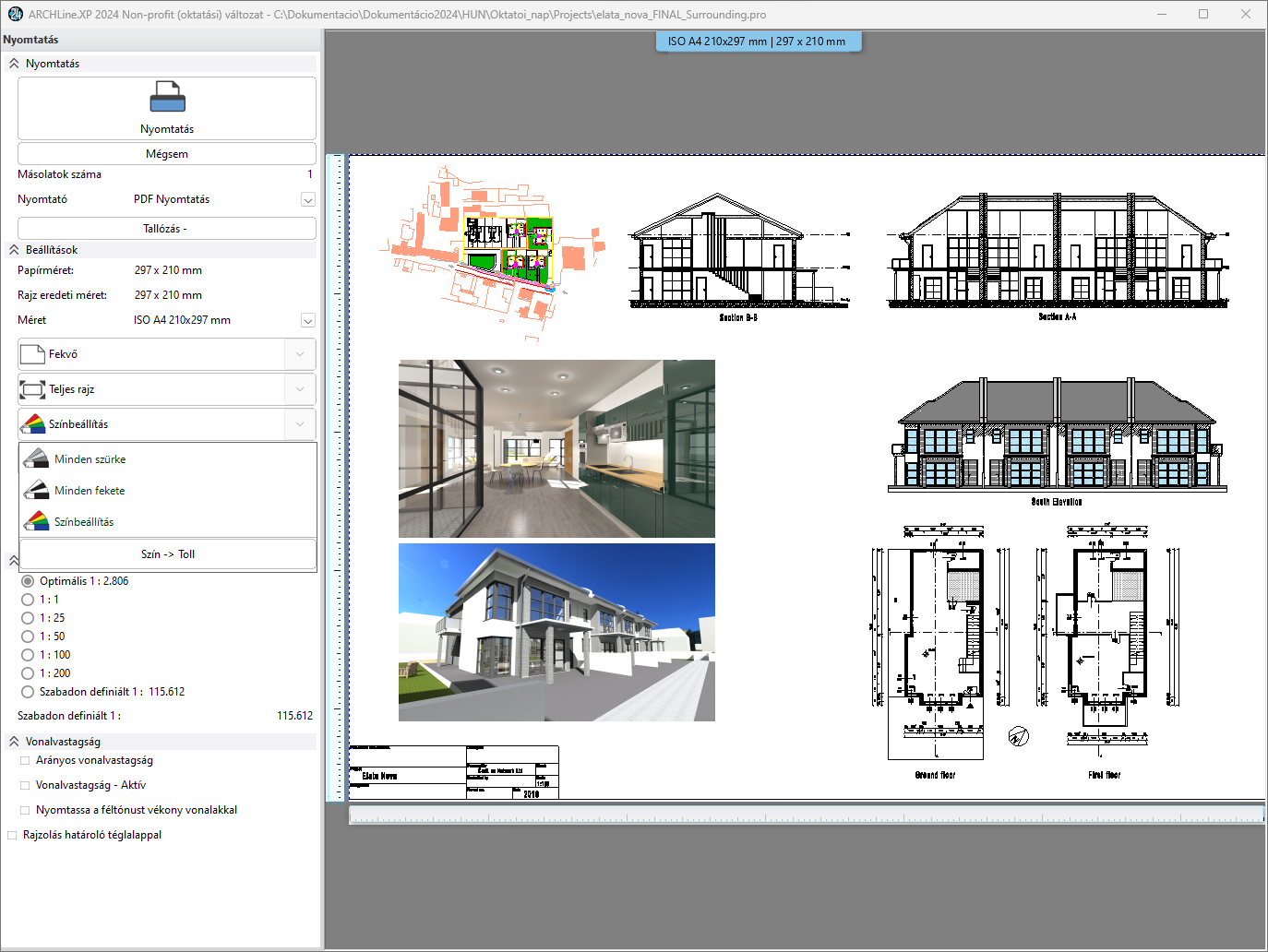 Kattintson a nyomtatás ikonra miután kiválasztotta azt a rajzot vagy nyomtatható területet, valamint azokat a beállitásokat amelyekkel nyomtatni szeretne, vagy amelyből PDF-fájlt szeretne létrehozni.