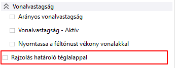 | Vonalvastagság - Aktív | Ha engedélyezve van, a program figyelembe veszi az egyes elemekhez rendelt vonalvastagságot. |