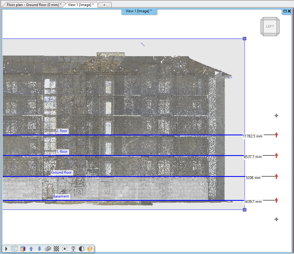 A BIM modell pontfelhőből való létrehozásának első lépése az épületszintek illesztése a pontfelhőhöz.