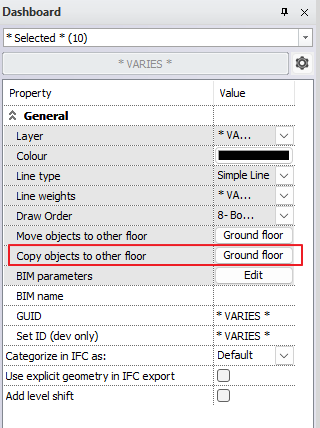1. Válassza ki a másolni kívánt elemeket az aktív alaprajzban. A fogadó elemek (például a falak) automatikusan tartalmazzák a tárolt elemeket (pl. ajtók, ablakok, oszlopok).