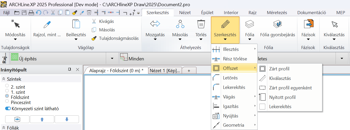 Az offset új menüszalag parancsszerkezete