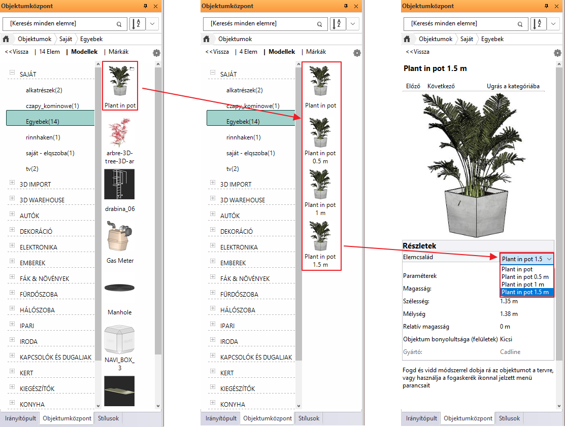 Egyszerűen létrehozhatunk variánsokat a programban: helyezzük el az objektumot az alaprajzon vagy a 3D nézetben, majd jobb kattintással válasszuk a Variáns létrehozása parancsot.